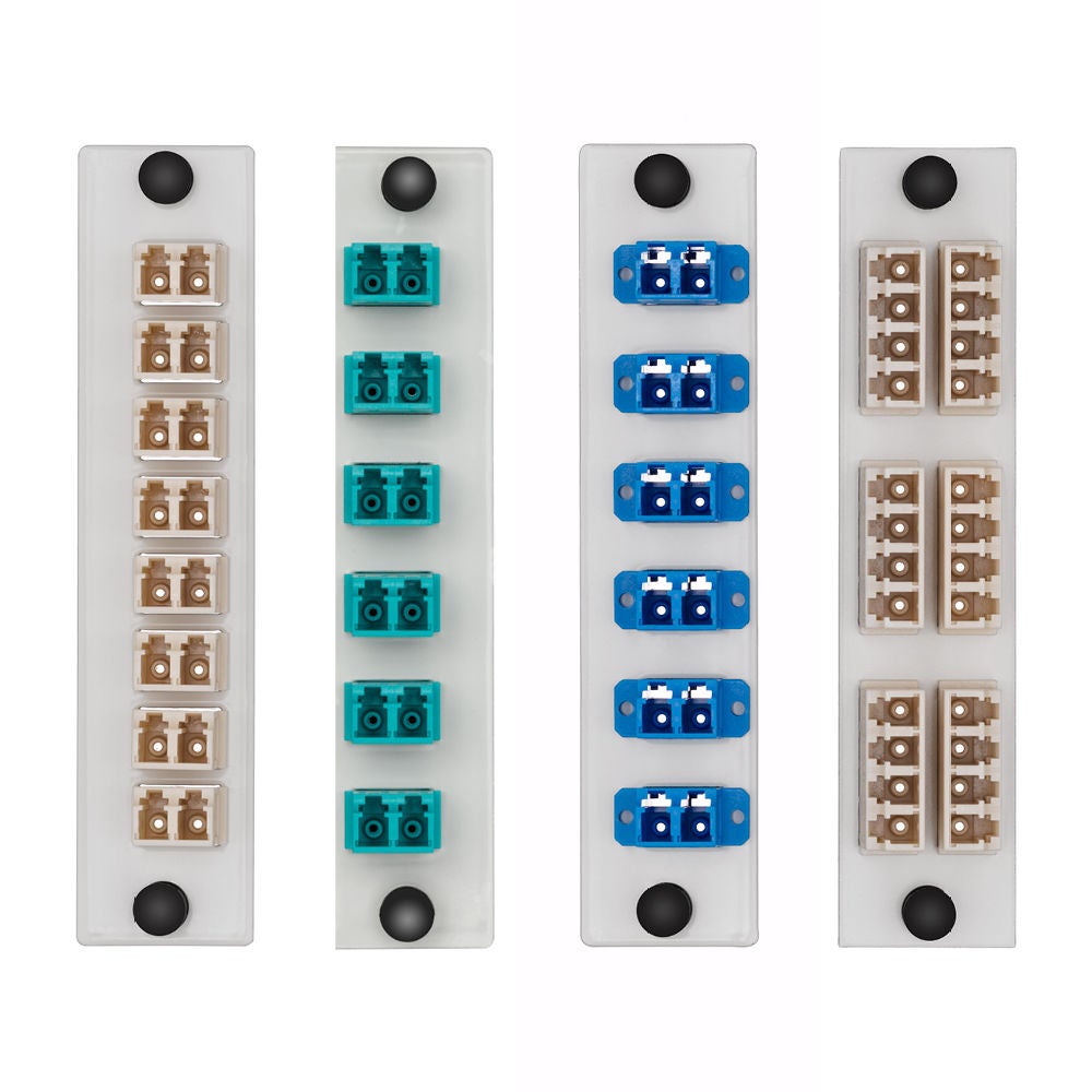 Leviton Fibre Adaptateur Plaques fournir un moyen à relier colonne vertébrale-à-colonne vertébrale ou colonne vertébrale-à-horizontal fibre câblage.